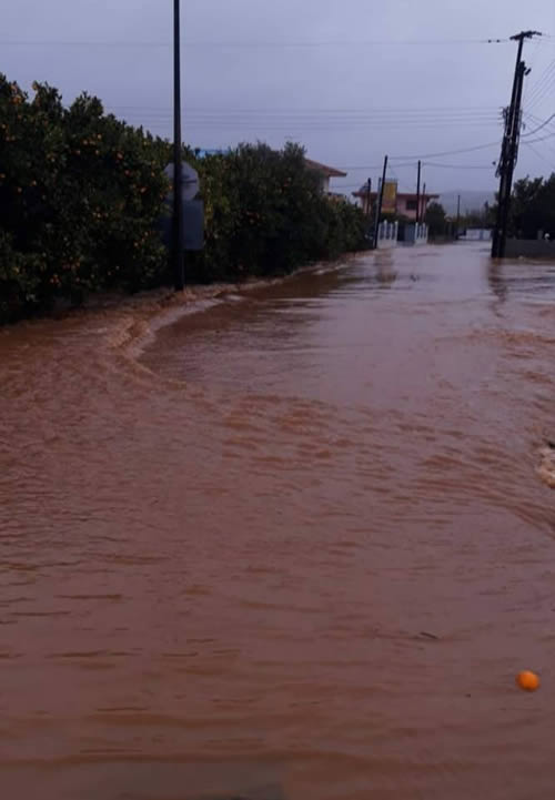 που βρίσκονται σε εξέλιξη έχουν δημιουργηθεί πλημμυρικά φαινόμενα στο οδικό δίκτυο και έχει διακοπεί αυτή την στιγμή (9.30 το πρωί της 25/1/2019) η κυκλοφορία στην Εθνική Οδό Σκάλας - Βλαχιώτη και η επαρχιακή οδός Αστέρι - Έλος.Στην παραπάνω φωτογραφία (ώρα 9.30) η Εθνική Οδός Σκάλας - Βλαχιώτη.